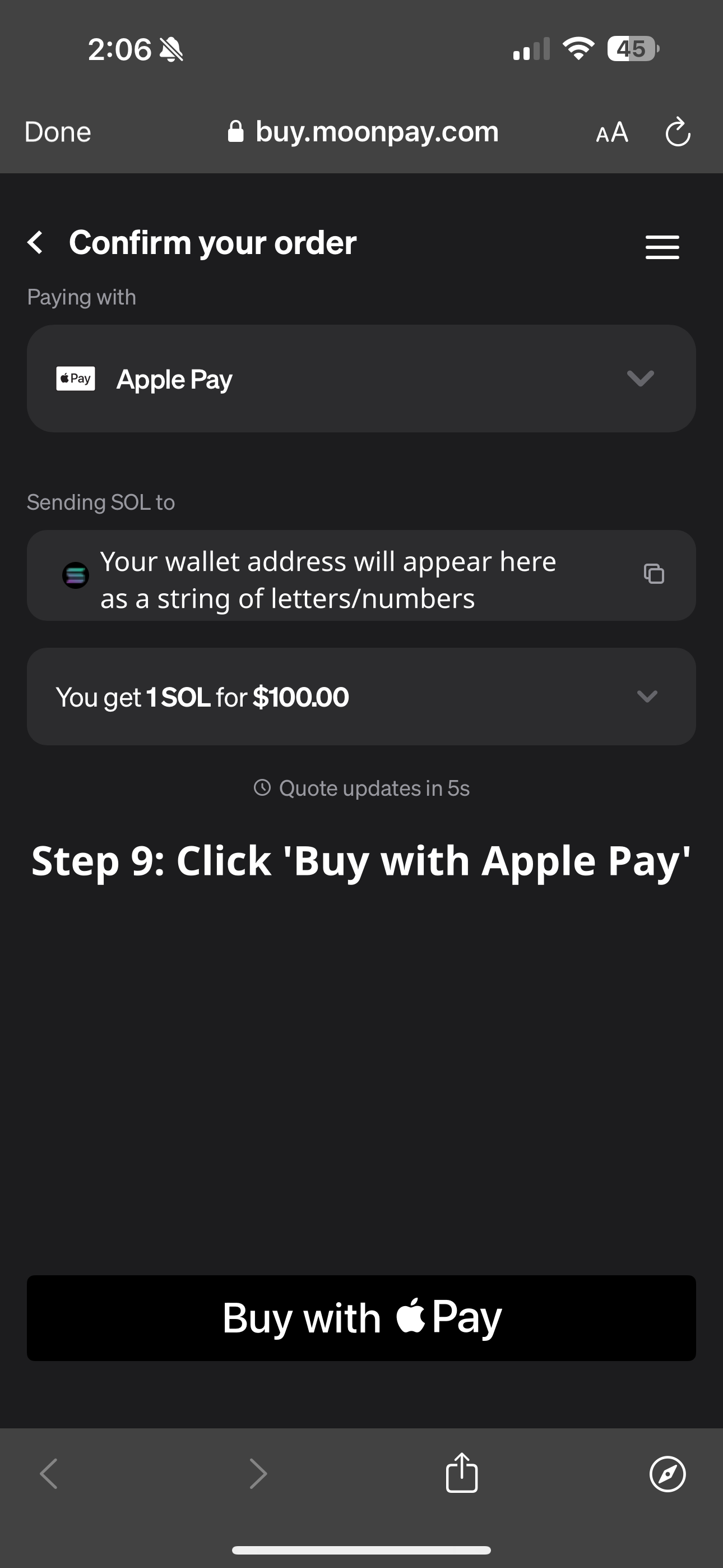 This guide will help you buy $WYNN easily using ApplePay on iPhone via on Phantom Wallet through Moonpay.